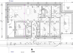 - Előtér, nappali-konyha-étkező, kamra/tároló, 3 szoba, gardrób, közlekedő, két fürdő, vendégmosdó, mosókonyha + 10,35nm terasz és 20,65nm-es garázs.