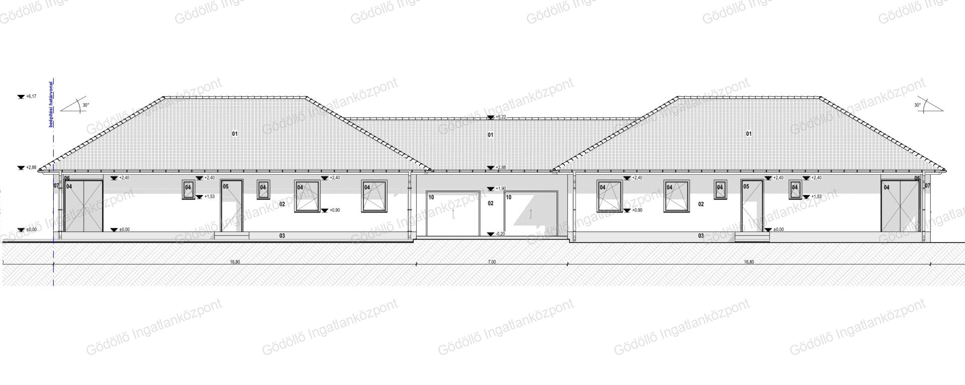 - nincs közös falrész, a két oldalt egy-egy garázs köti össze.