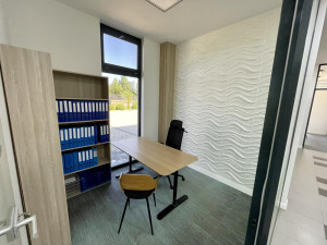 Igényesen berendezett, energiatakarékos, hűtött- fűtött, cégközpontnak, bemutatóteremnek, ügyfélszolgálatnak, ideális épület irodákkal raktárral kiadó. Az irodák kialakítása minőségi szőnyegekkel, falburkolatokkal, üvegfalakkal készült, irodabútorokkal berendezett iroda 1.33nm, iroda 2. 11nm, iroda 3. 7,7 nm, iroda 4. 15nm, konyha 15 nm, tárgyaló 16 nm, oktatóterem 30 nm , zuhanyzó. Külön bérelhető 90 nm es nagy belmagasságú kb. 100 eu raklap tárolására alkalmas raktár állványrendszerrel targoncával + 108 nm es műgyantás padlózattal rendelkező tiszta műhely. . Az épület körbejárható gépkocsival. Parkolók száma kb. 12 -15 db ipari kapun keresztül is megközelíthetőek a raktárak. Külső kamerákkal felszerelt épület, a gödöllői ipari parkban jó megközelíthető helyen. Ideális ügyfélszolgálatnak, bemutatóteremnek, cégközpontnak. stb. Az épület Gödöllő belterületén, az ipari parkban helyezkedik el. Az M31 autópályáról 2 perc alatt elérhető, az M0-ás és az M3-mas autópálya szintén. Azonnal költözhető.