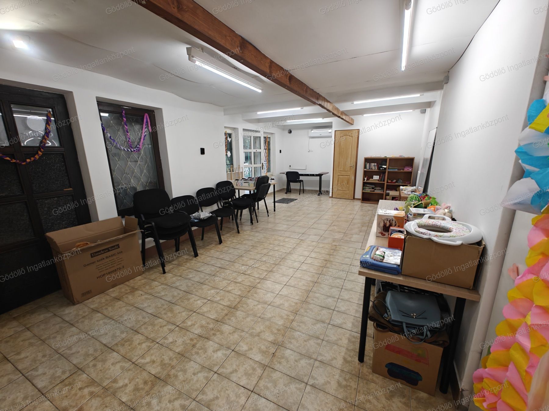 Kiadó egy 45nm-es, klimatizált üzlethelyiség, amely fűtő-hűtő klímával felszerelt, valamint teljes összközműves ellátottsággal rendelkezik: villany, víz, csatorna és gáz bevezetve. Igény esetén kandallóval történő rásegítő fűtés is megoldható. Az ingatlanhoz külön WC és mosdó tartozik.