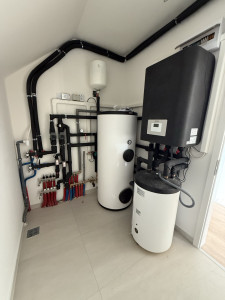- Fűtéséről hőszivattyú gondoskodik szintenként 1db hűtő-fűtő fan coil-al.