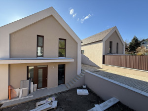 - 367m2-es telken helyezkedik el. A két ikerházfél csak a fedett gépkocsibeállónál ér össze, nincs közös fal, a kapuk és kocsibejárók teljesen különállóak, így biztosítva a maximális intimitást.